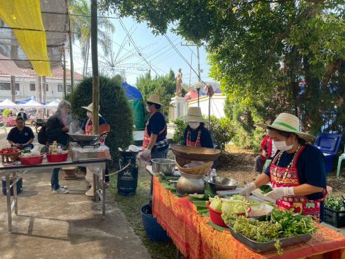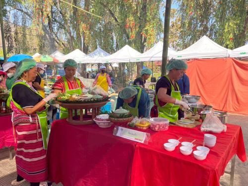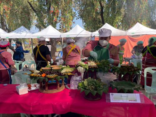 1.ยำสตรอว์เบอร์รี 2. แกงข้าวคั่วจิ้นไก่ 3.จอผักกาด 4.ไส้อั่ว 5.น้ำพริกอ่อง 6.ลาบหมูคั่ว 7.ขันโตกอาหารพื้นถิ่น